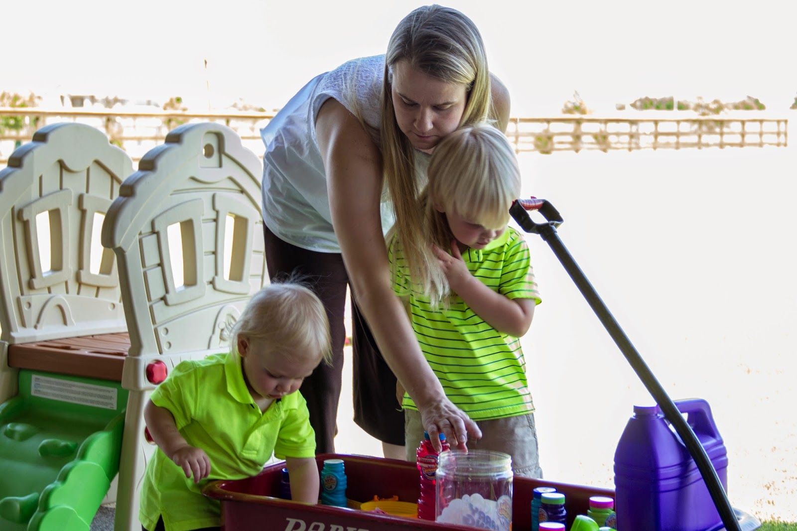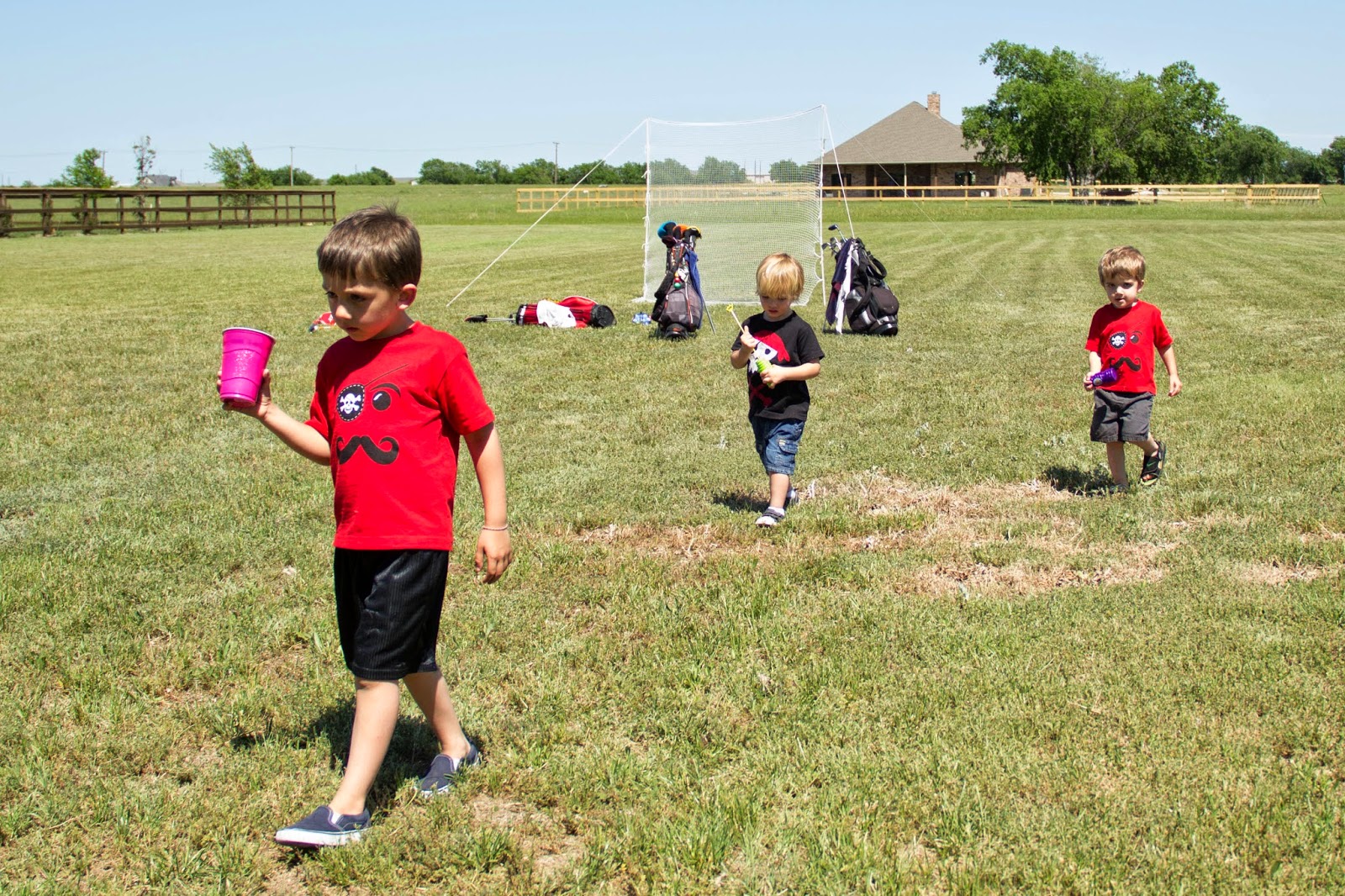 We set out games (Derek set up a putting green and driving range for the big boys), bubbles and soccer balls for the kids to play with.
