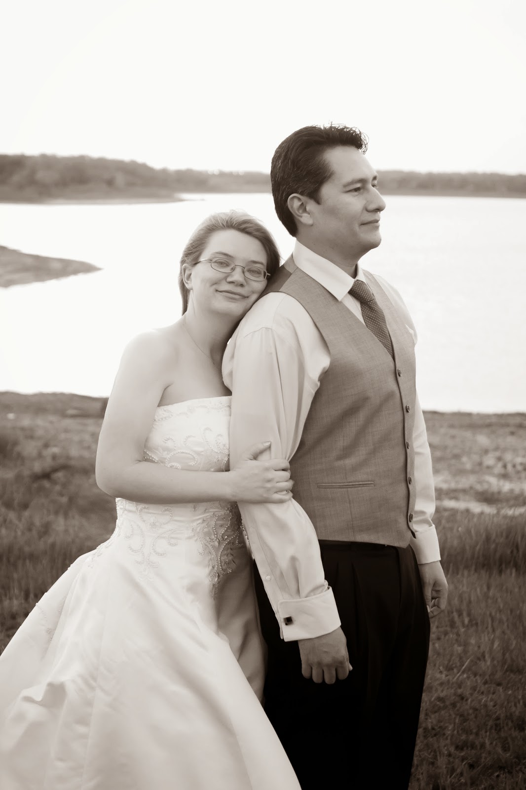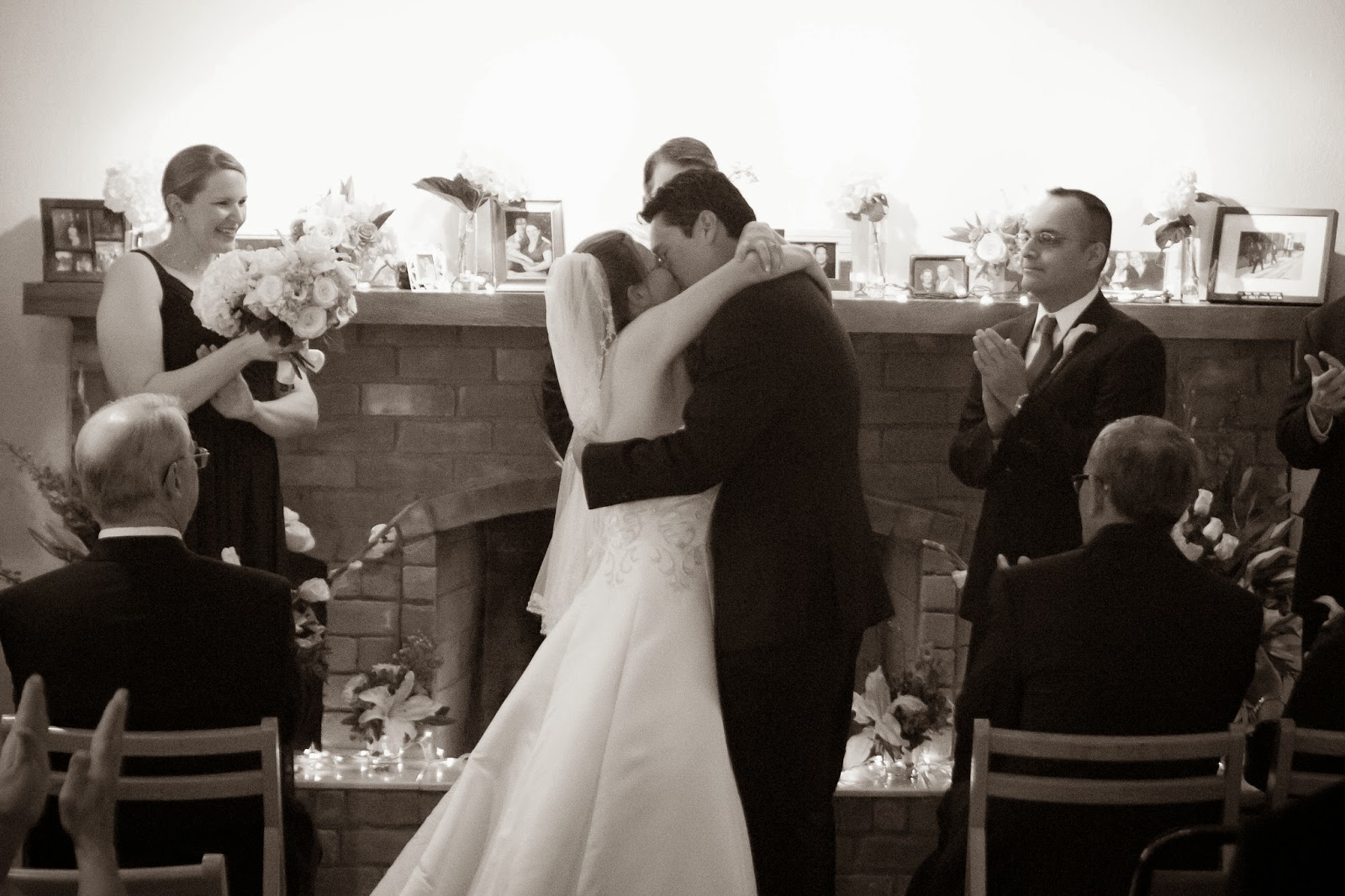 Sergio and Libby are not only two of our closest friends, but they are two of the best people I know. Their love story began over a decade ago when they met while working together at a movie theatre. They have since moved toVirginia, braved the cold and distance from their families, gone through job changes, made the move back to Texas and renovated a house. In the midst of all that they got engaged. They planned a beautiful December wedding at Paradise Cove in Grapevine, Tx. Everything was set! December 7, 2013 rolled around and family and friends were coming in from all over to witness the wedding we had all been waiting for….and then Icemagedon hit the DFW area. Everything was frozen! There was no way to get to the venue so they had to make a decision….postpone the wedding or change their wedding plans. They decided to have the wedding at their house in front of the same fireplace that Libby’s parents were married in front of. It was simple, beautiful and perfect!