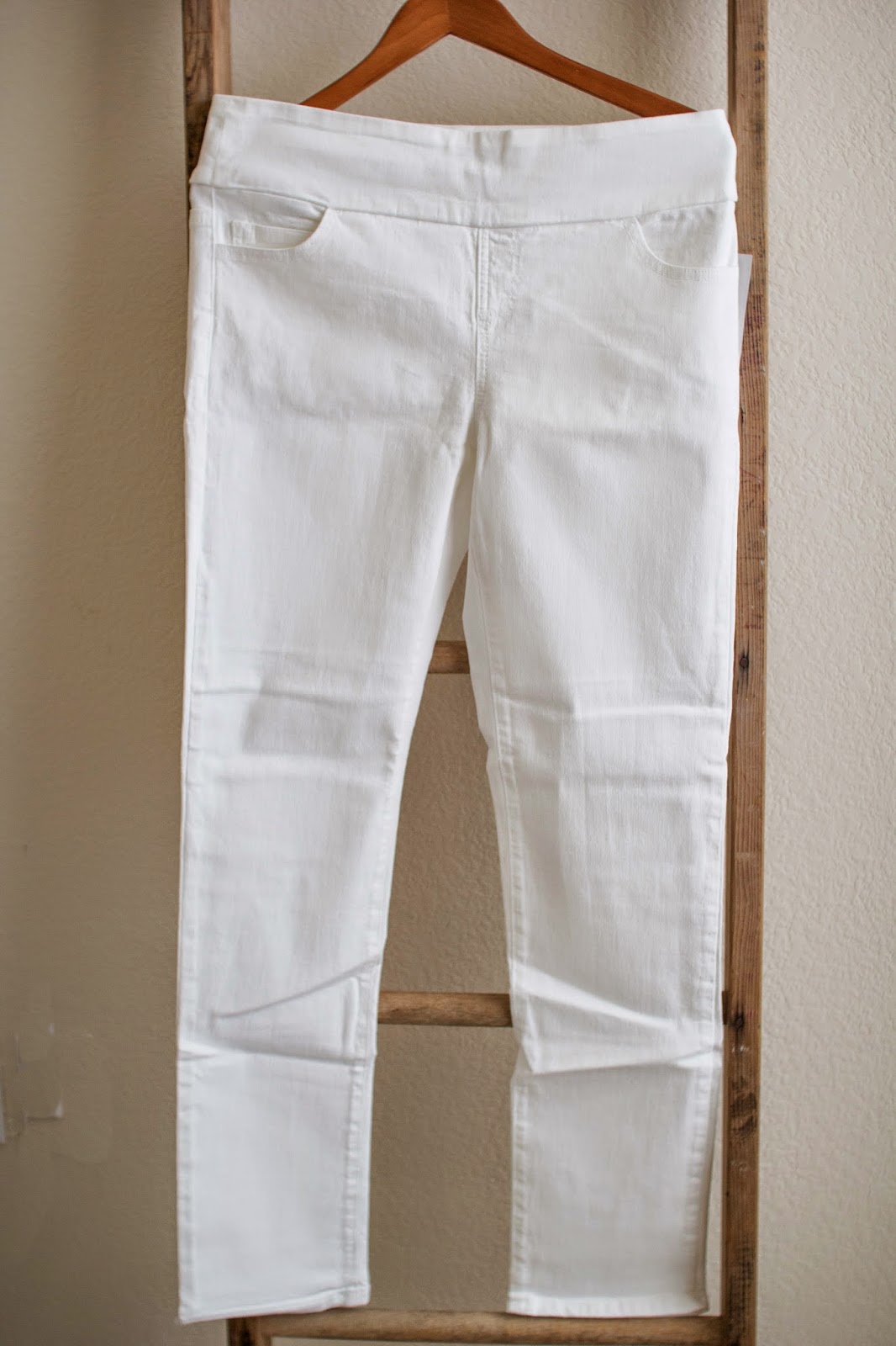 The next item in my box was a pair of really cute white skinny leg jeans. I especially loved that they had an elastic waist (even if it did remind me of my maternity pants), however, the fit was not the most flattering on me and the material was a little too heavy for summer use in Texas. These were a no-go!
