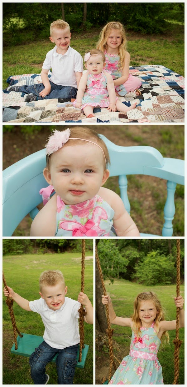 About a year ago I was driving around looking for new locations for photo shoots when I came across a house that had a wooden tree swing hanging from an oak tree in their front yard. I remember thinking how simple it looked sitting there swinging in the breeze, just waiting for a kid to come along and play. That is where the idea for using a tree swing for a mini session was born. Fast forward a year to a sunny spring day in April. The tree swing is hanging from a large tree in the Grapevine Botanic Gardens and two sweet families are on their way to play. I had so much fun watching these little ones swing, laugh and even jump from the swing. We had a lot of fun and got some great shots!